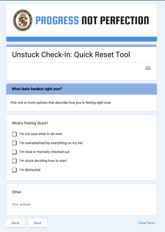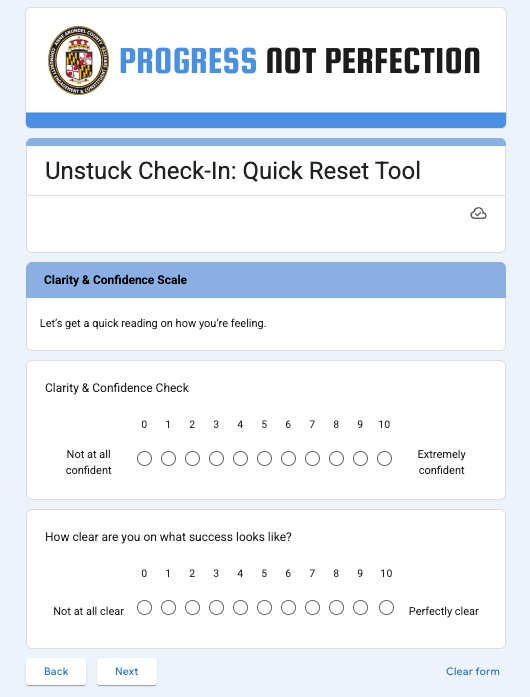 What came out of that collaboration is a simple but powerful tool we now use called the Unstuck Check-In.